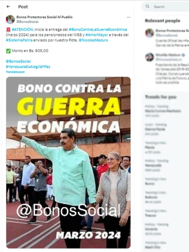 El Gobierno de Nicolás Maduro ya empezó con el pago del Bono de Guerra Económica correspondiente a marzo y es entregado específicamente al grupo del programa Amor Mayor. Este subsidio es brindado como una medida en contra de la crisis política y económica que atraviesa Venezuela. Además, tiene como beneficiarios a cuatro categorías entre los ciudadanos. A continuación, te revelamos si este apoyo ha tenido un aumento en su monto y cuándo se pagó.
