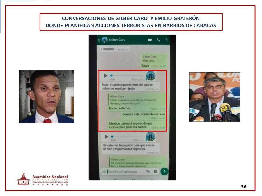 Entre las "pruebas" presentadas hay supuestas conversaciones entre 2 usuarios de Whatsapp (Caro y Graterón y Alfredo Jimeno y Caro) captadas desde el teléfono de Guevara. Técnicamente imposible. Si tiene acceso al tlf de Guevara, pueden acceder a sus conversaciones, no a las de otros.