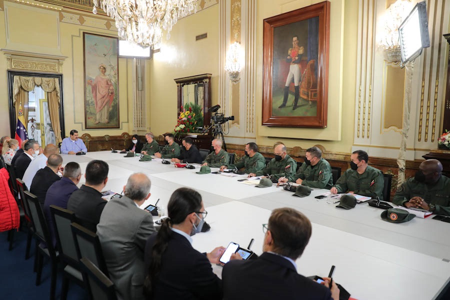 Desde el Palacio de Miraflores, en Caracas, durante una reunión con el Consejo de Vicepresidentes, Estado Mayor de la Fuerza Armada Nacional Bolivariana (FANB) y Alto Mando Político de la Nación, el Jefe de Estado expresó a nombre de Venezuela una gran preocupación por la extensión de la guerra y se pueda convertir en una Tercera Guerra Mundial».