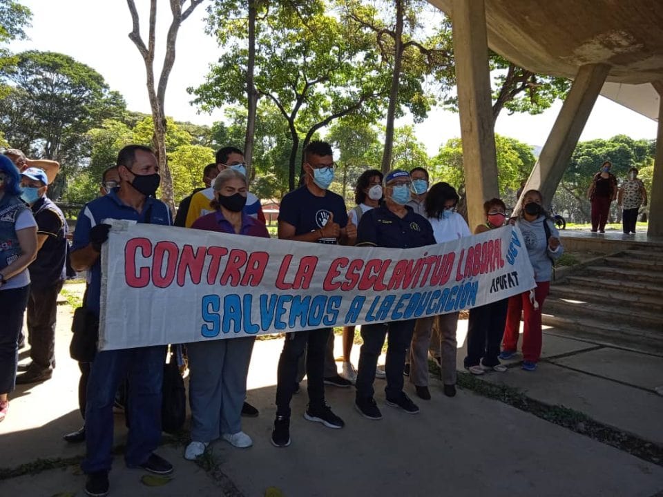 Mientras que unos obreros pulían los pisos de la Plaza del Rectorado y otros ejercían labores de restauración del campus de la Universidad Central de Venezuela (UCV), este 10 de noviembre se congregaron representantes de la Asociación de Profesores, Sinatra, Sutra, Apufat, la Federación de Centros Universitarios (FCU) y las autoridades universitarias para exponer su posición ante la designación de Jacqueline Faría como protectora de dicha casa de estudios.