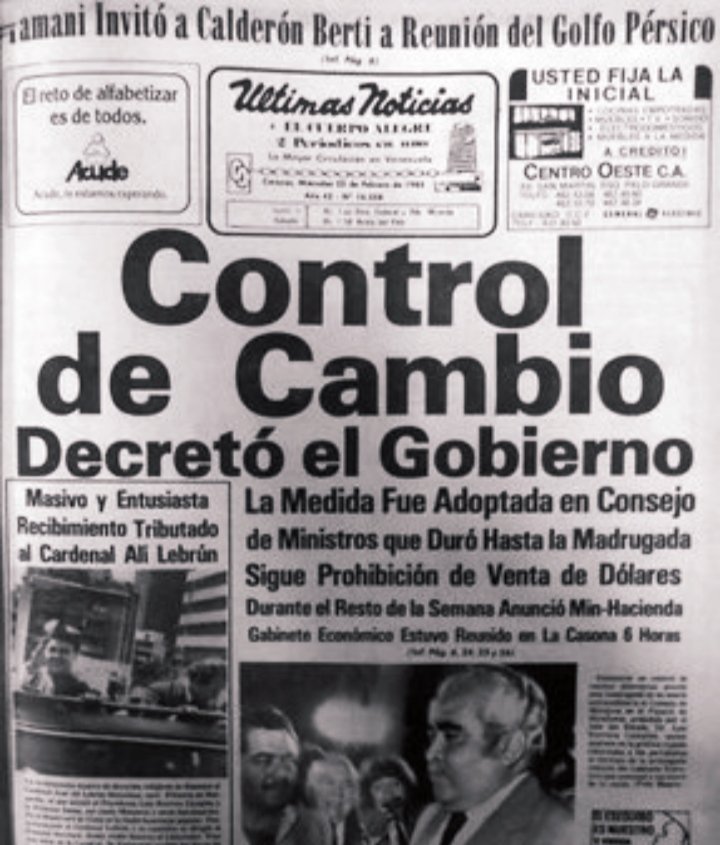 Es así como apenas los precios del petróleo se vinieron abajo y con ellos las reservas internacionales. El gobierno del presidente Luis Herrera Campins (1979-1984) se percata del riesgo de fracturar las importaciones y de caer en insolvencia para pagar la deuda. Entonces decide devaluar, acabar con el 4,30. Eso sí, los mismos que sacaban los dólares baratos del país, usaron sus privilegios para informarse de la venidera devaluación, y se atosigaron de más divisas.