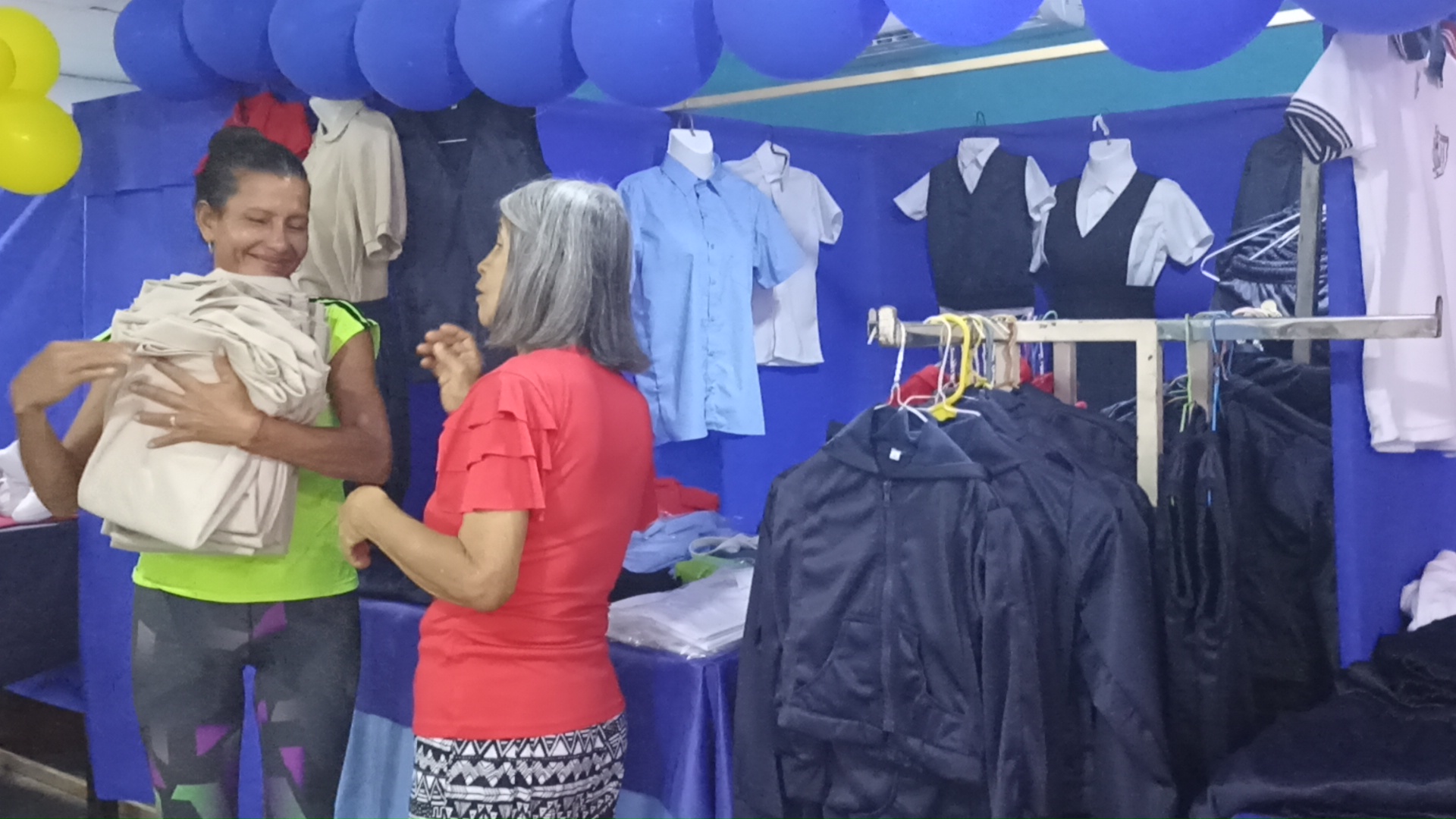 Wendy Sayago, desde hace 10 años trabaja con su mamá en una fábrica de textiles, se dedica a la elaboración de uniformes escolares, pero este año la situación ha sido más difícil que en años anteriores, pues están estancados por la cantidad de mercancía que ingresa al país desde Colombia y China y que las venden a precios más bajos.